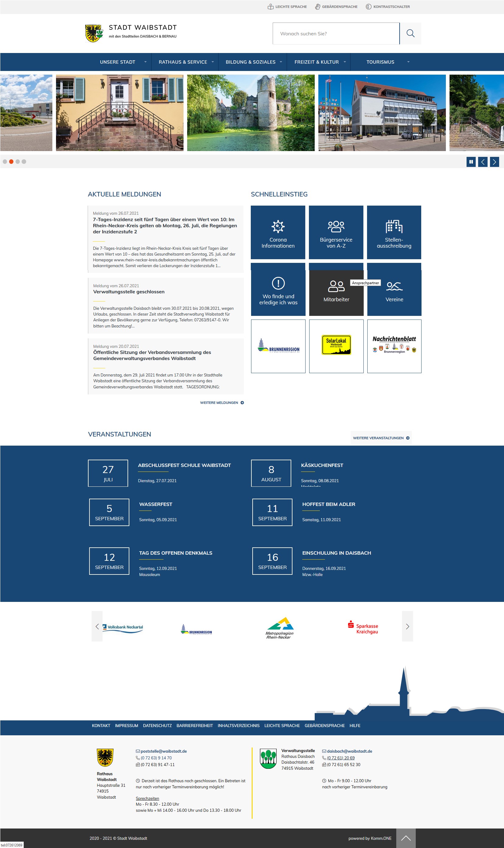 Auf der 1. Seite der Internet-Seite Waibstadt gibt es immer aktuelle Informationen